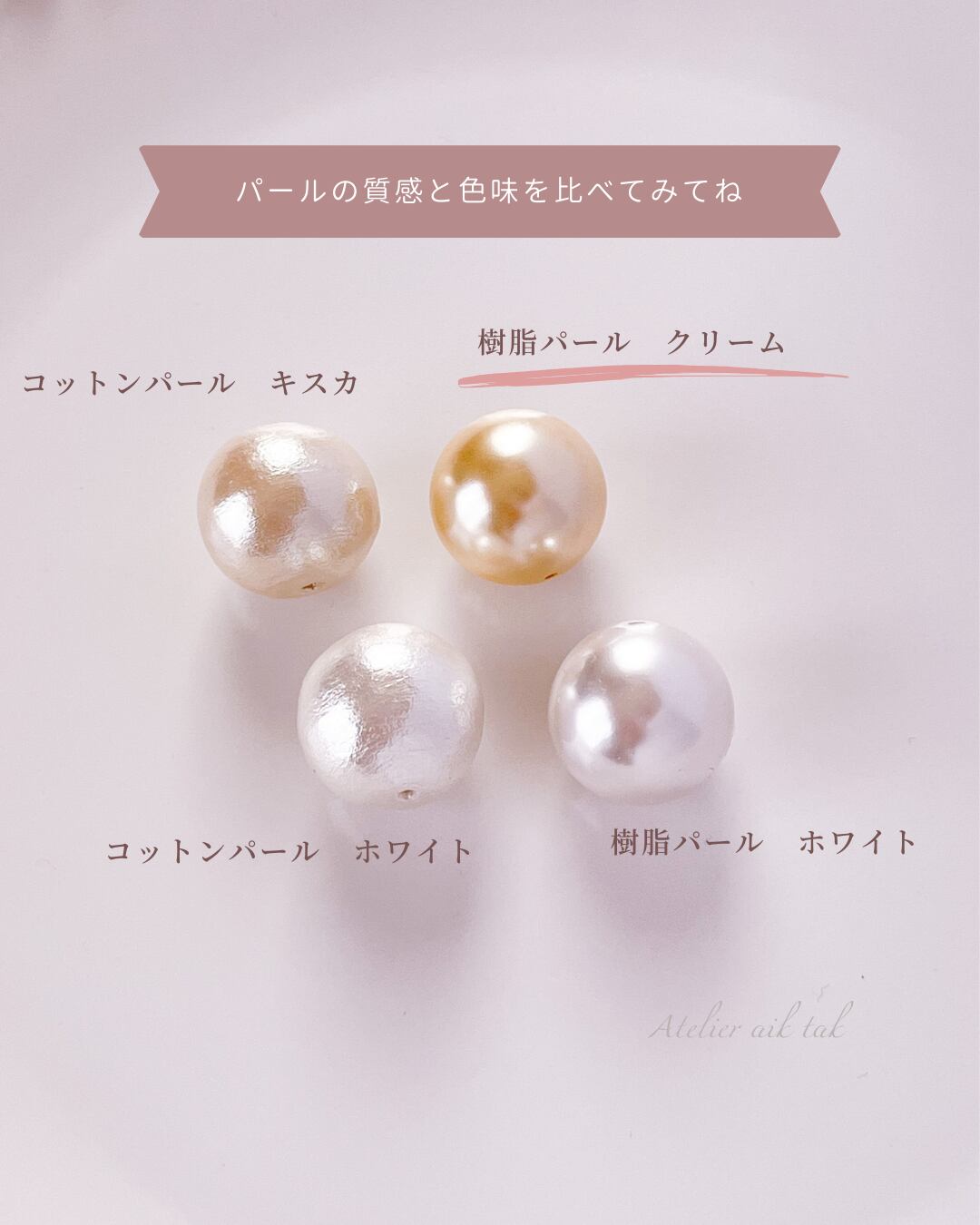 そこに存在感バッチリな直径18mmの大きな樹脂パールを1粒つけましたので、ゆらゆらとゆれてさらにかわいさアップです。