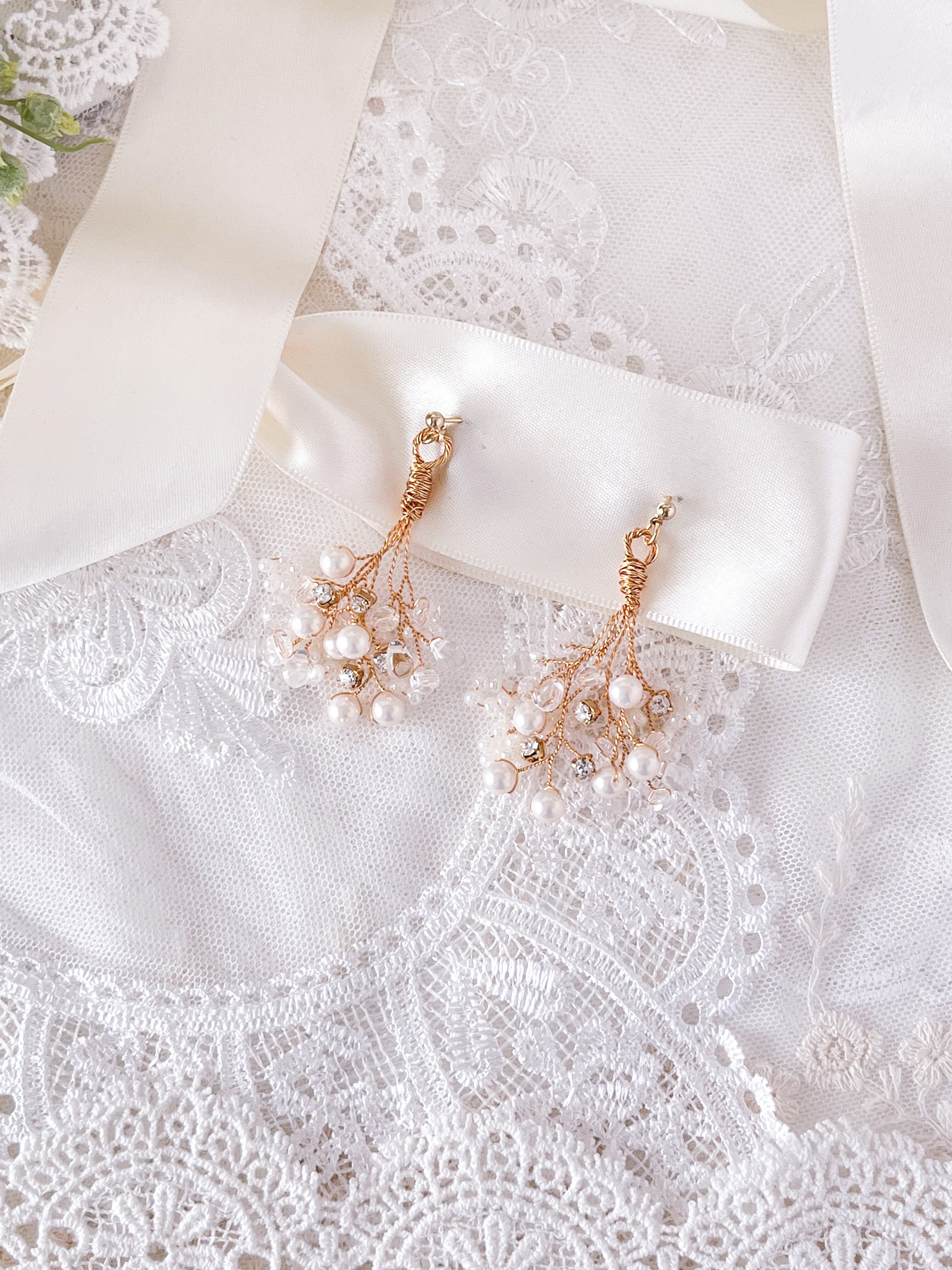 小枝の朝つゆブーケピアス・イヤリング ゴールド