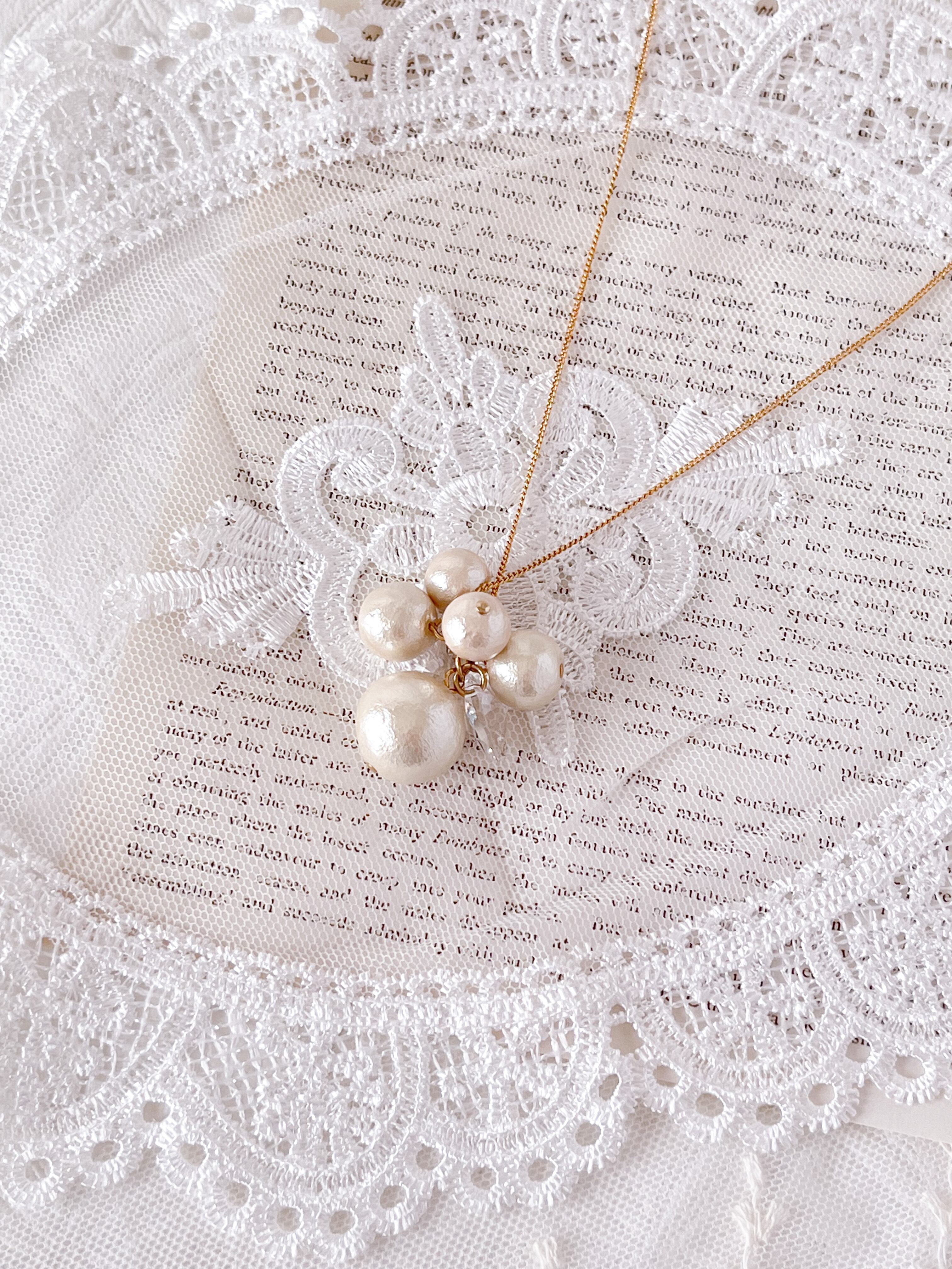 コットンパールとクリスタルガラスのバブルネックレス ゴールド
